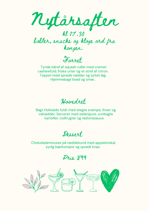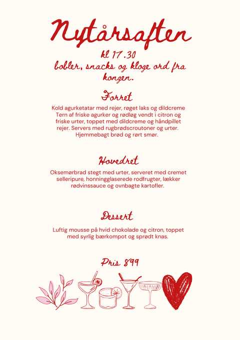 Bemærk: Der er et begrænset antal borde i stue etagen og de vil blive fjernet i tilfælde af dans. Vi skruer op for musikken efter spisning.... dørene åbnes for et begrænset antal gæster efter kl 22.30
